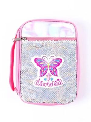 Bible Cover, Cherished, Canvas, Pink with Sequins and Butterfly, Medium