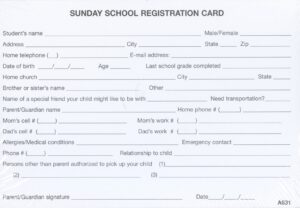 SUNDAY SCHOOL REGISTRATION CARD (100)