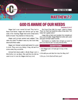 Bible Challenge class time begins each week with a new lesson from the teacher book. Each lesson’s topic is related to the verse they are memorizing for the week. The teacher will choose which lesson they would like to teach by choosing a verse from the challenge card and locating its corresponding lesson. There is a total of twenty-six lessons, each with a corresponding game.