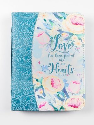 BIBLE COVER, BLUE FLORAL LOVE MED
