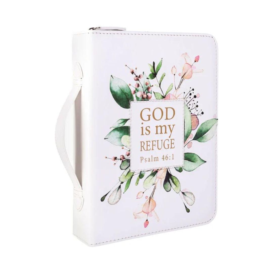 Bible Cover, God Is My Refuge, Faux Leather, White, XL