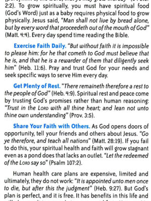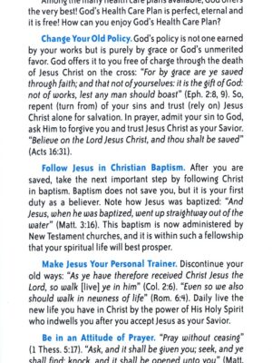 Caring for your spiritual health is even more important that caring for your physical health. H. L. Wilkinson shares with readers the steps to take in order to care for their spiritual health. From trusting in Christ to continually praying and sharing the faith, Wilkinson guides the reader toward Christ above all else. This simple bi-fold tract is excellent for helping both the unbeliever and believer alike to align their lives with Christ.