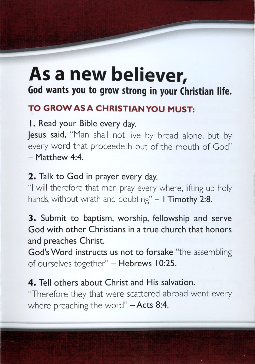 In this quad-fold tract, a simple gospel of belief in Christ is presented. Sin is declared to be the hindrance between man and God, yet the reader is reminded that Christ’s sacrifice is enough to cover that sin and allow them to approach the throne of God. This tract is a simple way to get the simple gospel of Jesus into the hands of others.