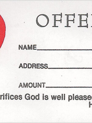 Hebrews 13:16 (KJV) #3 Size Offering Envelope. To promote offerings for special occasions or ministries of the church. These 4 1/4″ x 2 1/8″ “Kwik Open” offering envelopes are printed in colored ink on white paper, with the opening on the end. Flap glue is mint flavored. Packages of 100.