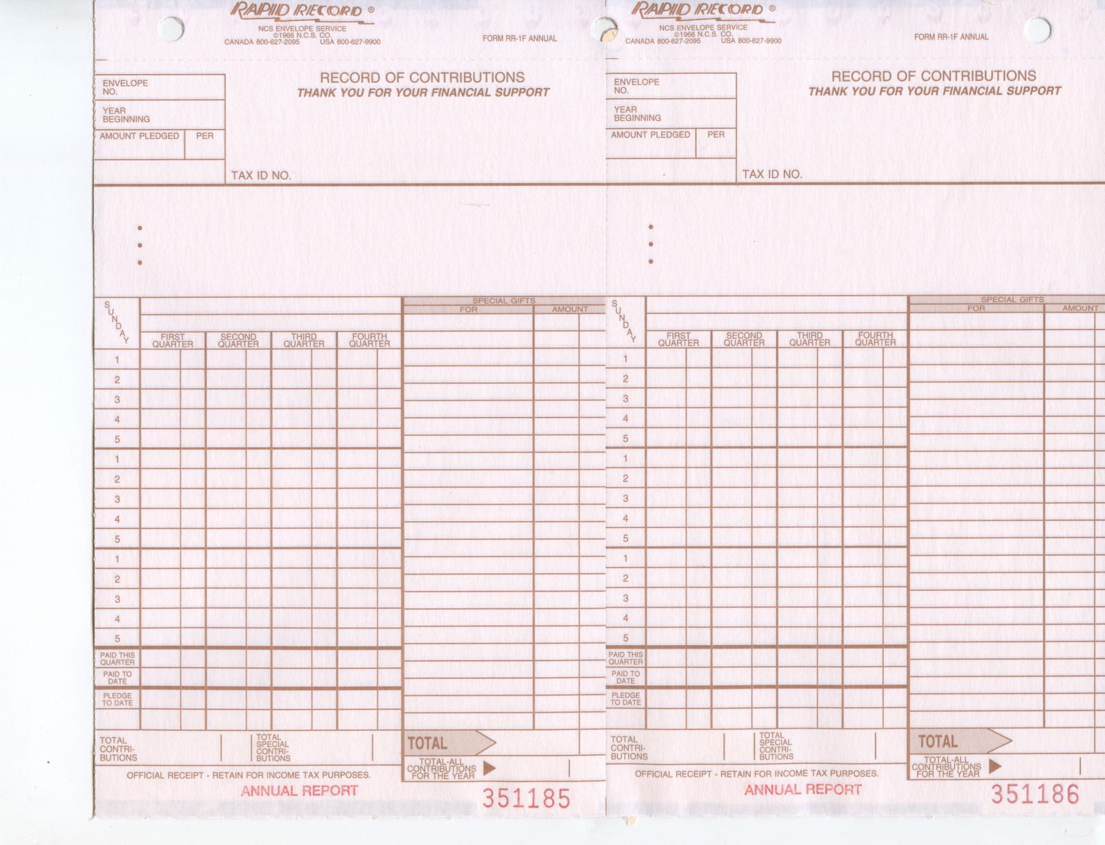 Records individual’s offereings for a full year.
