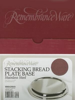 8 1/4″ diameter stacking bread plate base made of high end, food-grade stainless steel; a traditional silver color; curved rim allows for easier handling