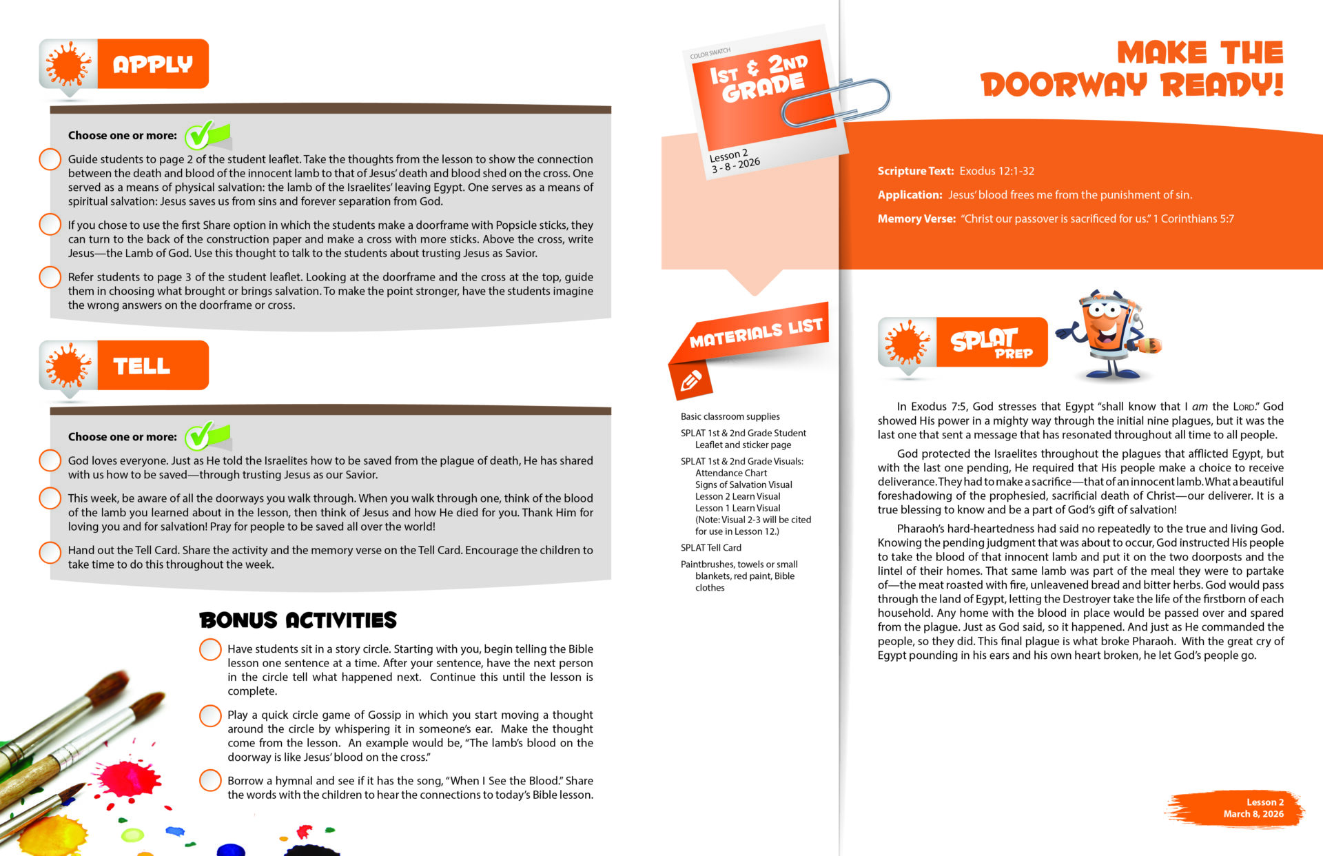 Sunday School SPLAT 1st & 2nd GRADE TEACHER LEAFLETS, Spring 2026