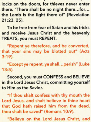 This Halloween themed bi-fold tract presents the gospel as the greatest treat ever given. It is an invitation for the reader to be released from the tricks of sin and Satan to become a child of God.